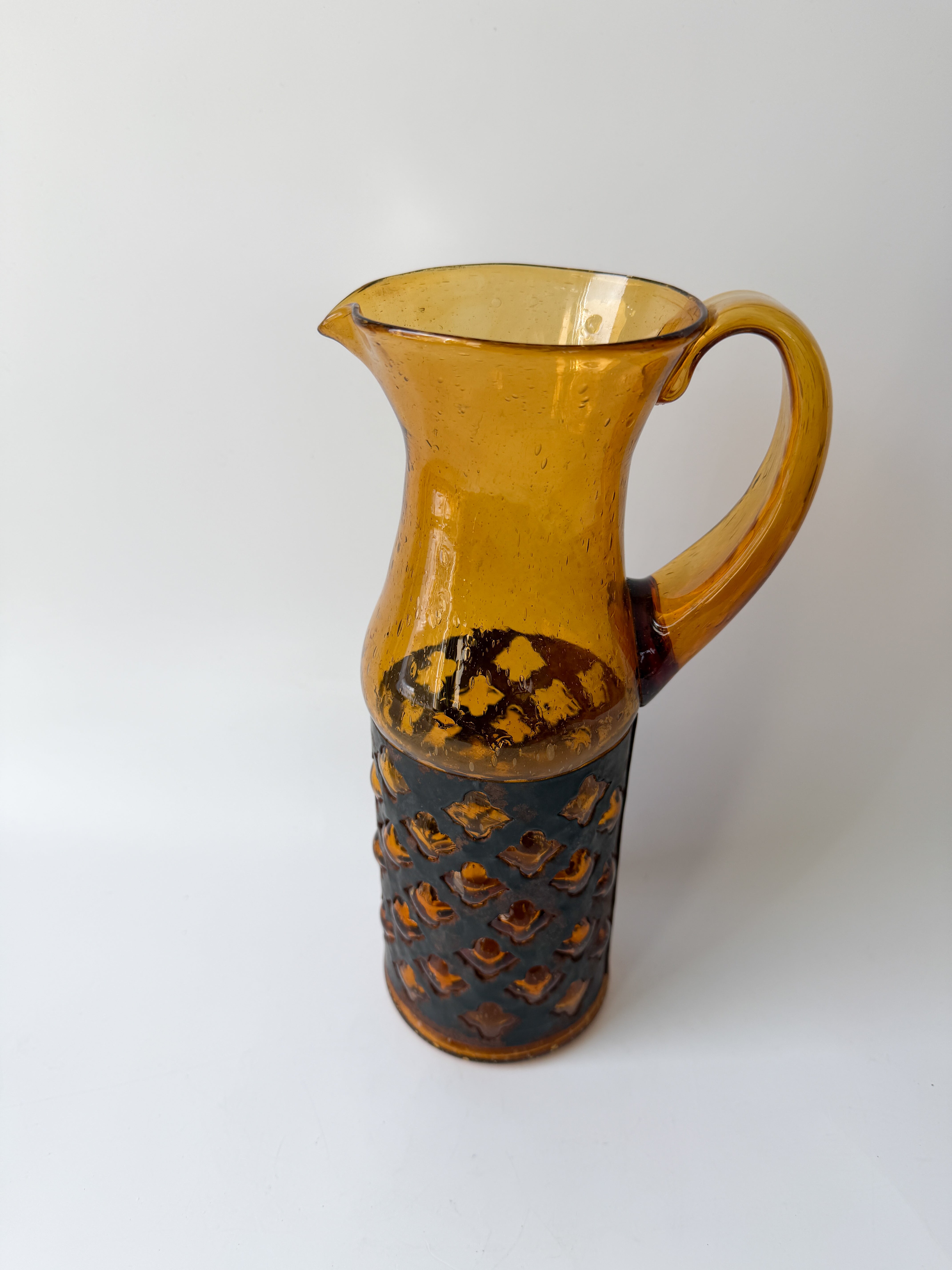 Vintage MCM Felipe Derflinger Brutalist Caged Amber Glass Pitcher